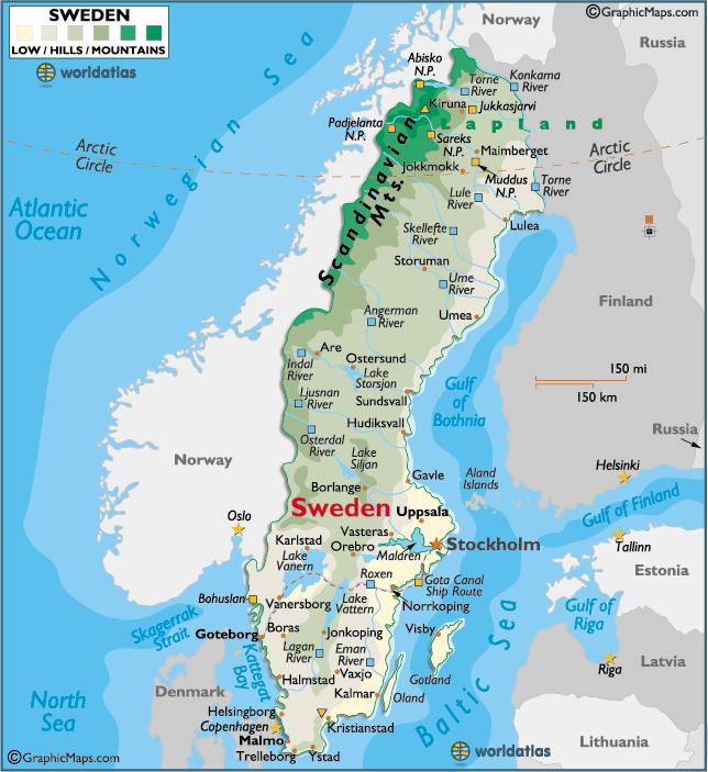Mountains in Sweden map. Sweden mountains map (Northern Europe - Europe) to print. Sweden mountains map (Northern Europe - Europe) to download. There are 87 Major Mountains in Sweden, that is, mountains with at least 600 meter of prominence (having a primary factor of at least 600 meter.) as its shown in Sweden mountains map. (There may be as many as 89 or as few as 86, see peaks marked with pm = "possible major" near the cutoff.) Taken together with the 570 Major Mountains of Norway, this makes a grand total of 652 Major Mountains in Scandinavia. This number could be as low as 644 and as high as 679. (We count 5 peaks as shared between Norway and Sweden.). For completeness, this list contains the 100 most prominent mountains in Sweden and a few more in order to list all mountains having a prominence of at least 500 meter.
